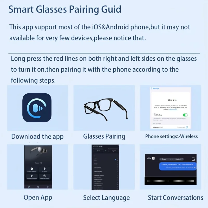 AI real-time translation/music control/wireless call/remote control camera |